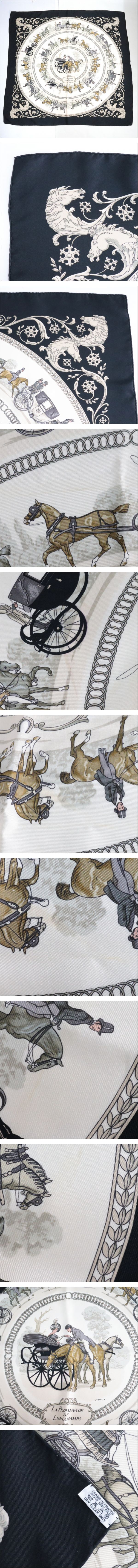 ◆◇HERMES エルメス スカーフ カレ90 LA PROMENADE DE LONGCHAMPS ロンシャンへの散歩 黒ベージュ系◇◆